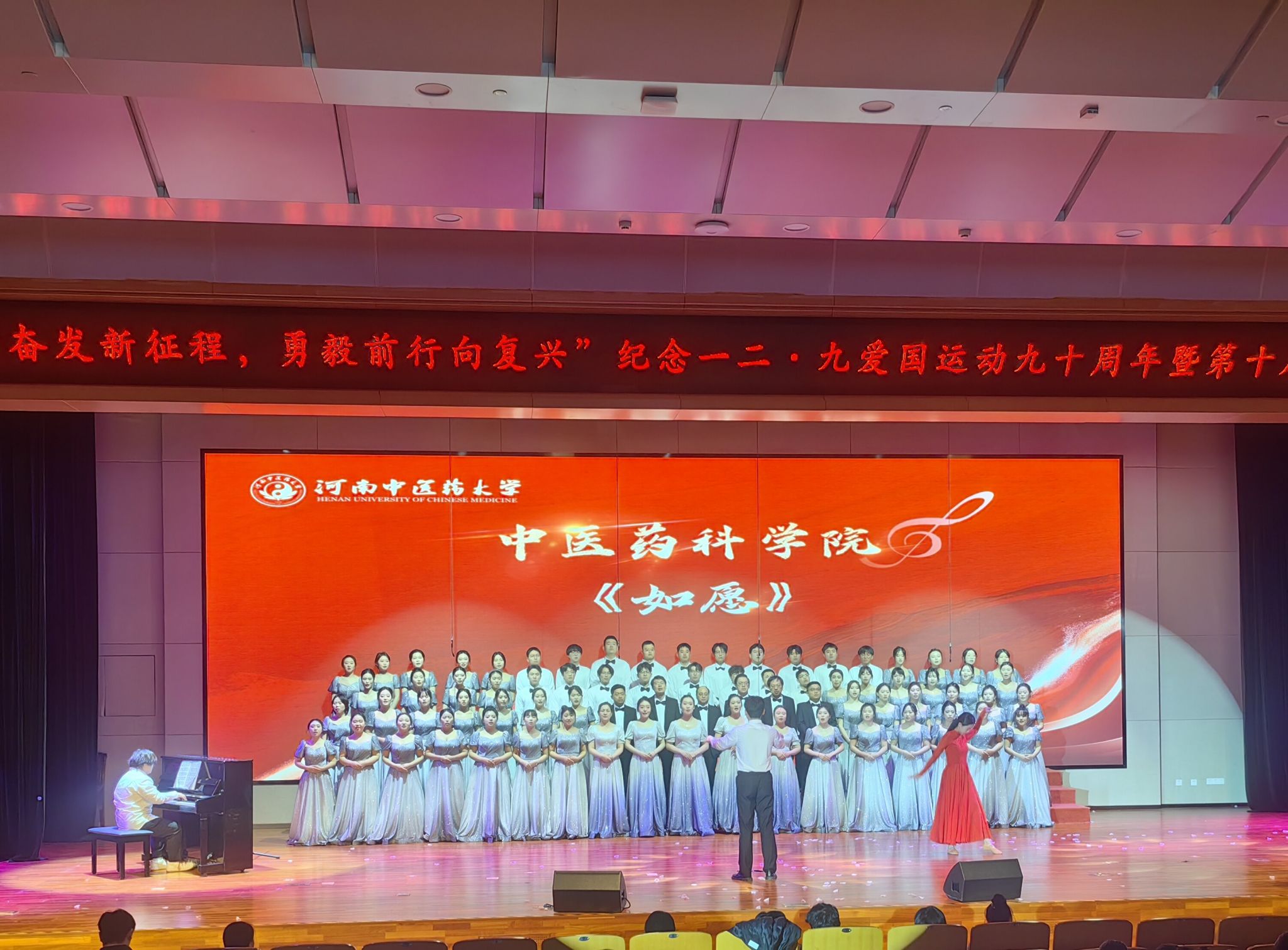 本网讯(文/图 段胜男 徐澳)为纪念“一二·九”爱国运动九十周年,弘扬爱国主义精神,激发师生爱国热情,学校隆重举办“踔厉奋发新征程 勇毅前行向复兴”第十届大学生合唱节。中医药科学院积极响应号召,组织优秀师生代表组成合唱团,以一首深情而恢弘的《如愿》倾情参演,用歌声架起跨越历史的桥梁,传承红色基因,以饱满的热情和精湛的演绎投身其中,展现新时代中医药青年昂扬向上的精神风貌与深厚的艺术素养。