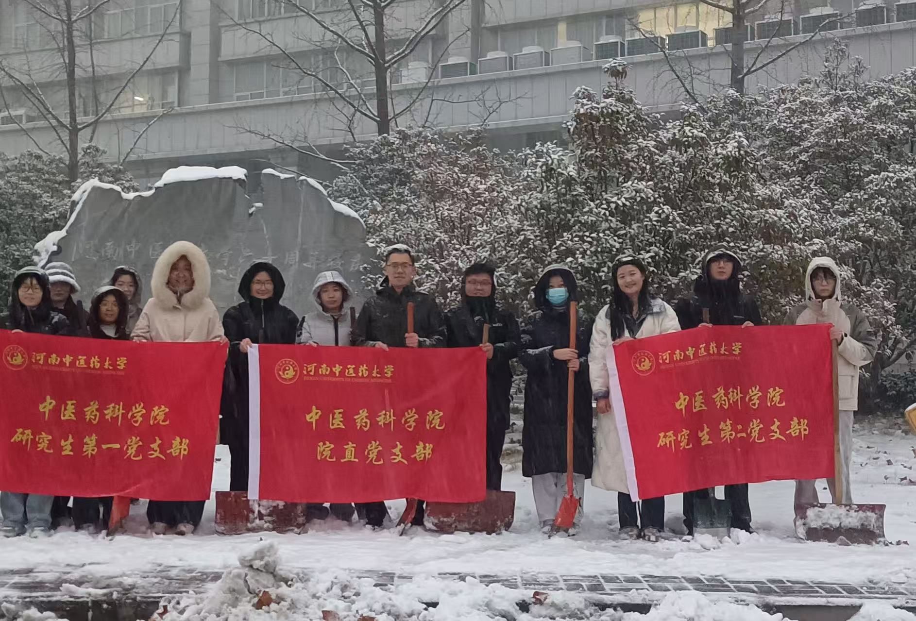 本网讯(文/图 史惠)12月12日,郑州市迎来今冬首场降雪。校园银装素裹,但也给师生出行带来诸多不便。为保障道路畅通和师生安全,充分发挥基层党组织战斗堡垒和党员先锋模范作用,践行“我为群众办实事”宗旨,深化劳动教育实践,中医药科学院研究生第一、第二党支部及院直党支部积极响应,联合组织开展了扫雪除冰志愿服务活动。